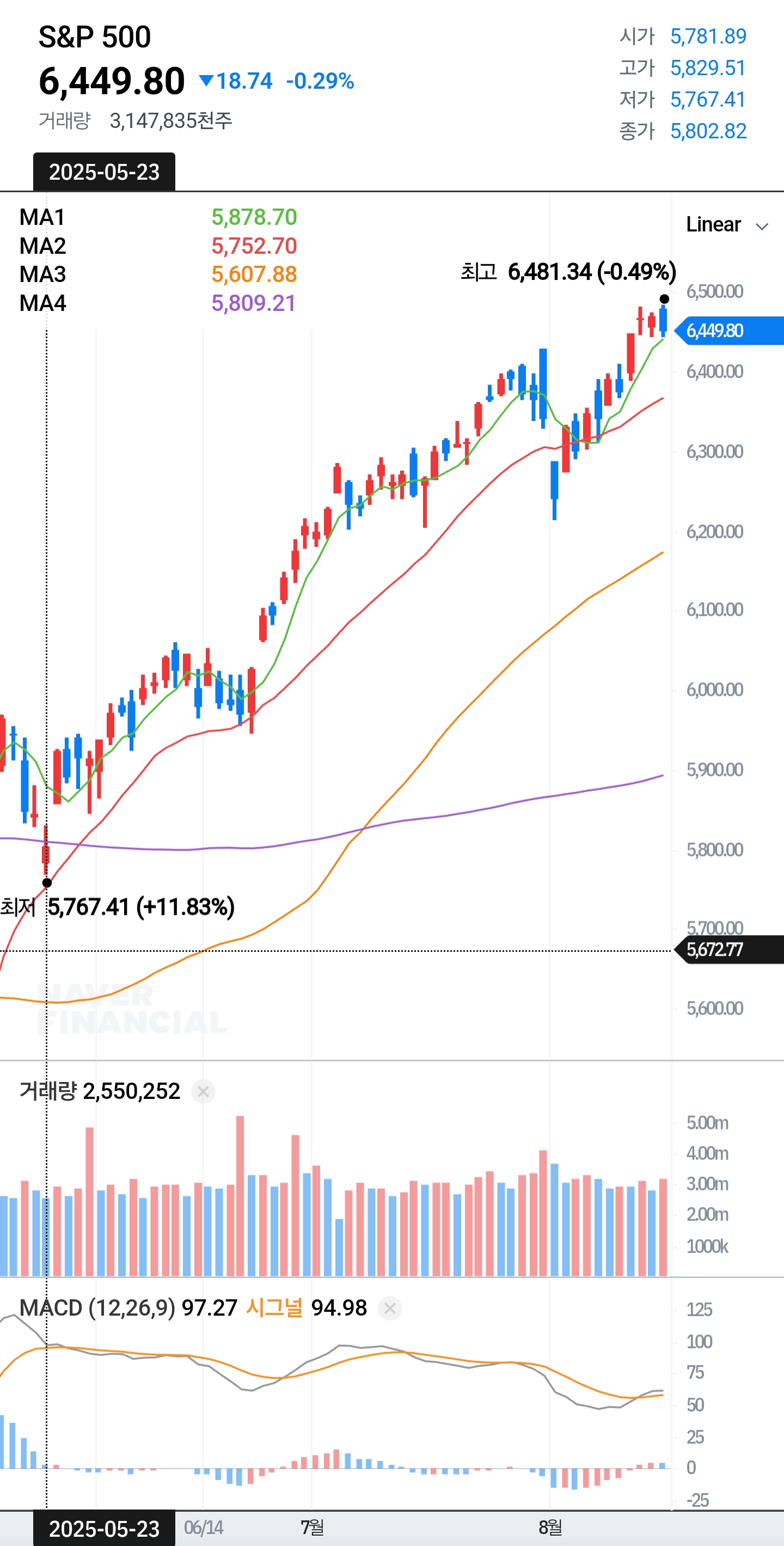 MA3 (60일선): 5,607.88