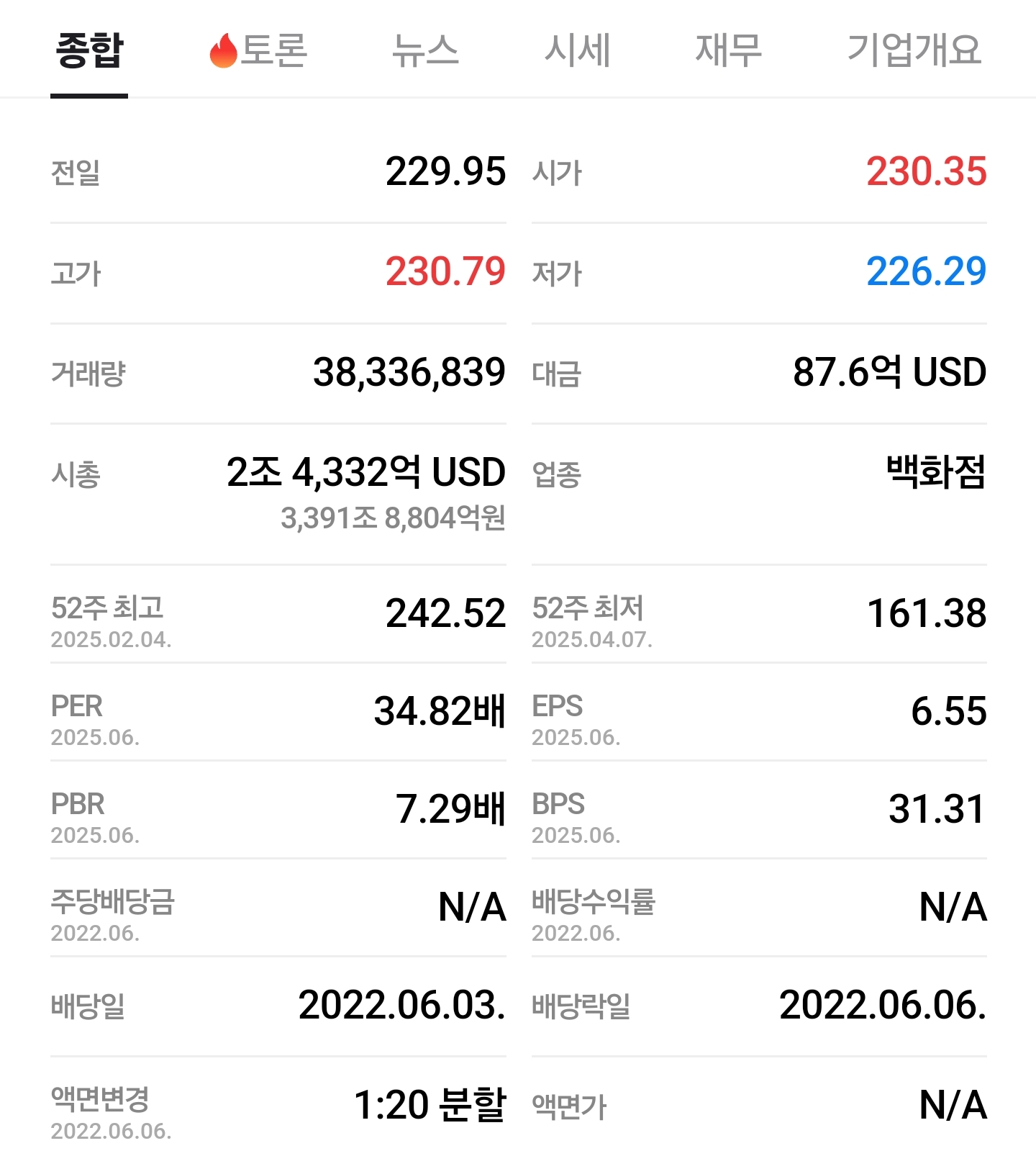 52주 고점/저점: 242.52 / 161.38 → 리스크-리워드 시각화에 유용