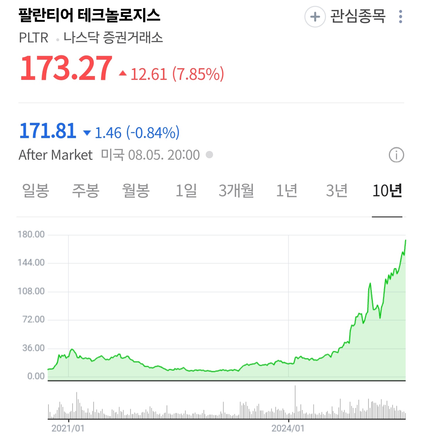 현재 주가 (2025.08.05 기준): $173.27 ▼ (-7.85%)