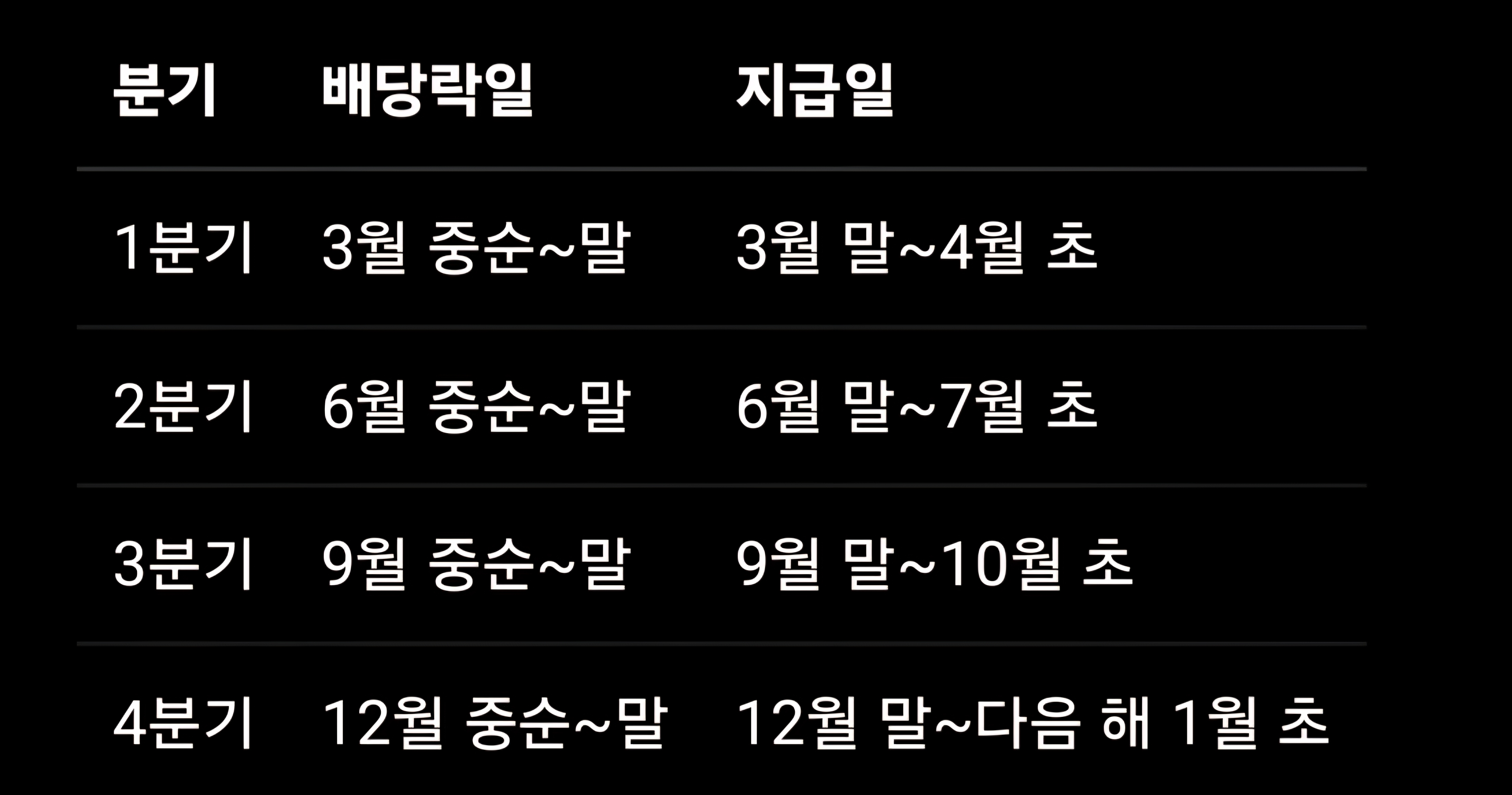 💡 배당락일 하루 전까지 주식을 보유해야 이번 배당금을 받을 수 있다.