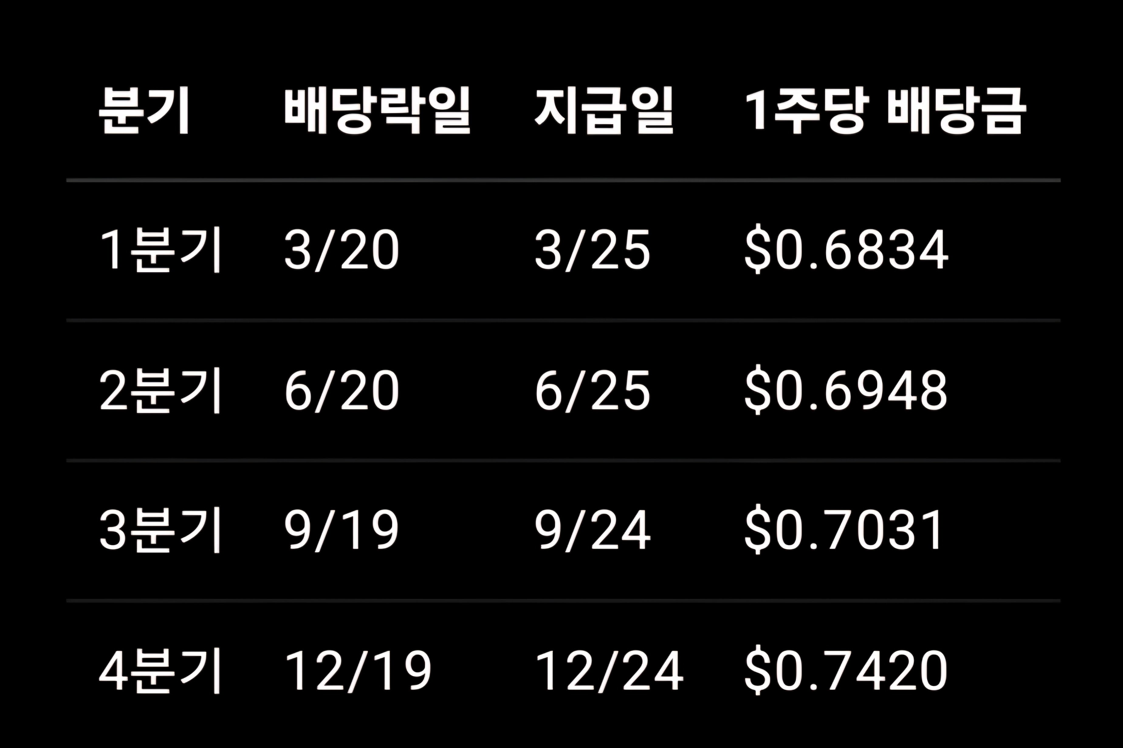 SCHD는 분기배당(Quarterly Dividend) ETF다.