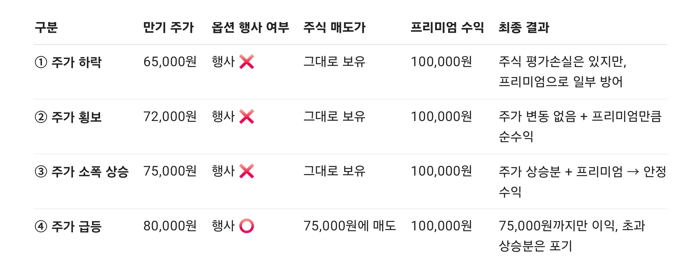 ์๋ฅผ ๋ค์ด, ์ฃผ๊ฐ๊ฐ 70,000์์์ 80,000์์ผ๋ก ์ฌ๋๋๋ฐ, 75,000์ ํ์ฌ๊ฐ ์ฝ์ ํ์๋ค๋ฉด ํฌ์์๋ 75,000์๊น์ง๋ง ์ด์ต์ ์ป๊ณ , ์ด๊ณผ๋ถ์ ์ ํ ์ฑ๊ธฐ์ง ๋ชปํฉ๋๋ค.