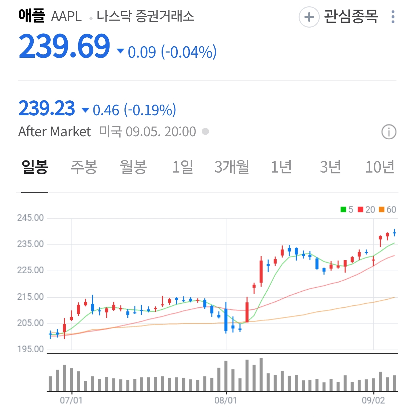 발표 내용이 시장 컨센서스와 거의 일치하면, 단기적으로 “sell-the-news”(차익 실현) 압력이 나올 수 있습니다. 다만 서비스 매출 호조·생태계 결속·Apple Intelligence 적용 확대 같은 펀더멘털 테마가 멀티플을 방어하면, 20·60일선 인근에서 수급 재유입이 붙을 가능성이 있습니다.