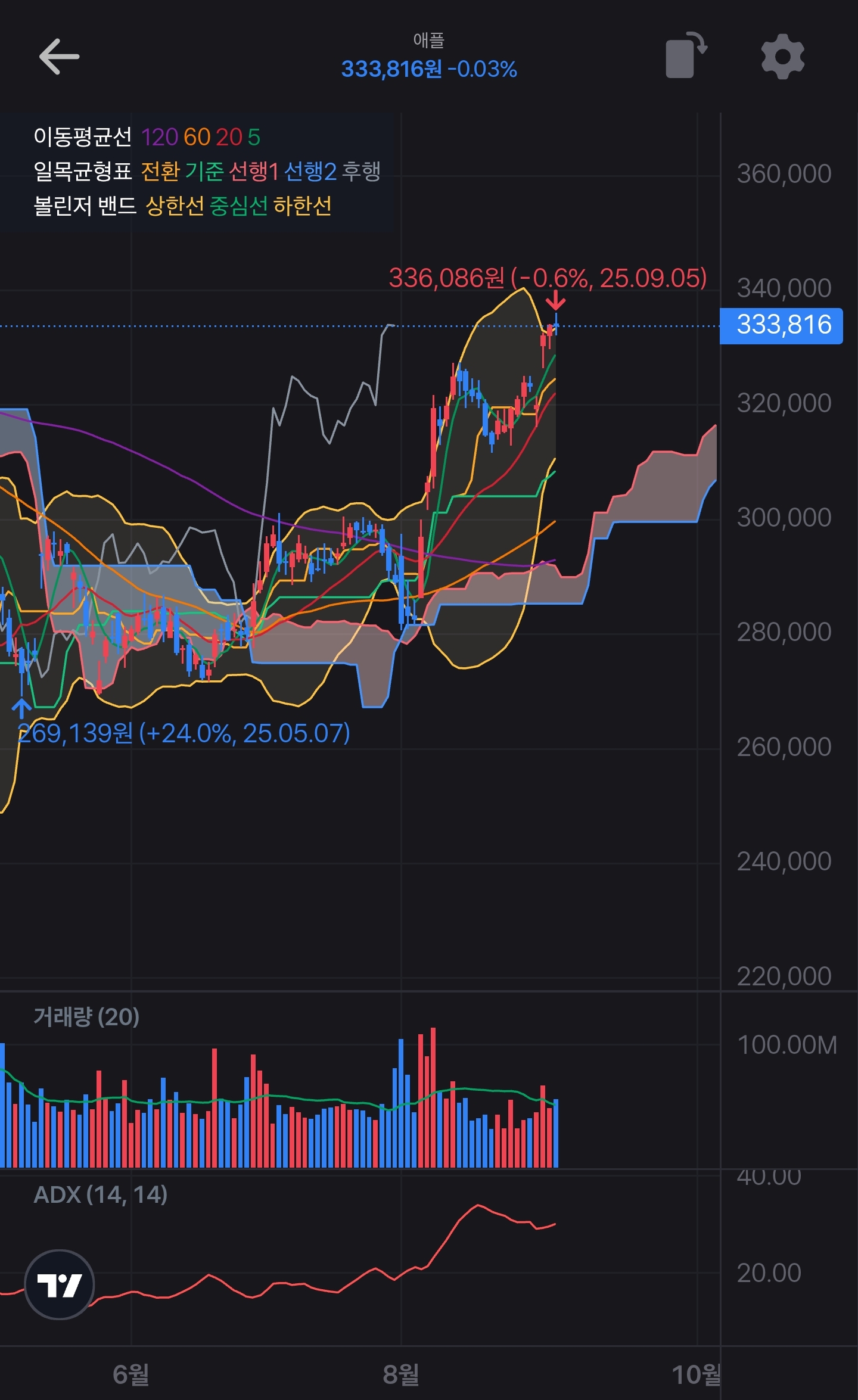 방어선: 20일선 → 60일선 → 일목 구름 상단 순차 지지.