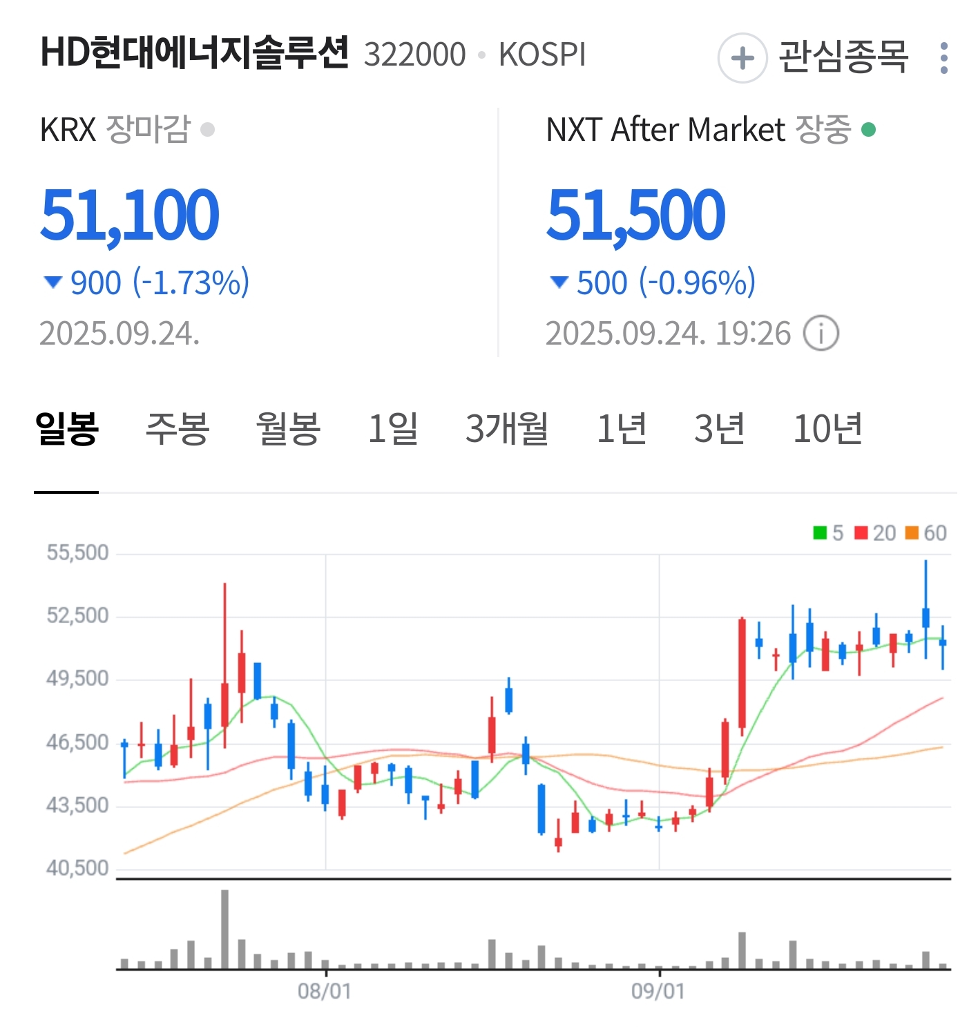 👉 따라서 HD현대에너지솔루션은 **“정책 수혜와 성장성에 베팅할 수 있는 종목”**이지만, 동시에 **“중국과의 가격 경쟁과 높은 밸류에이션 부담을 항상 염두에 둬야 하는 종목”**입니다.