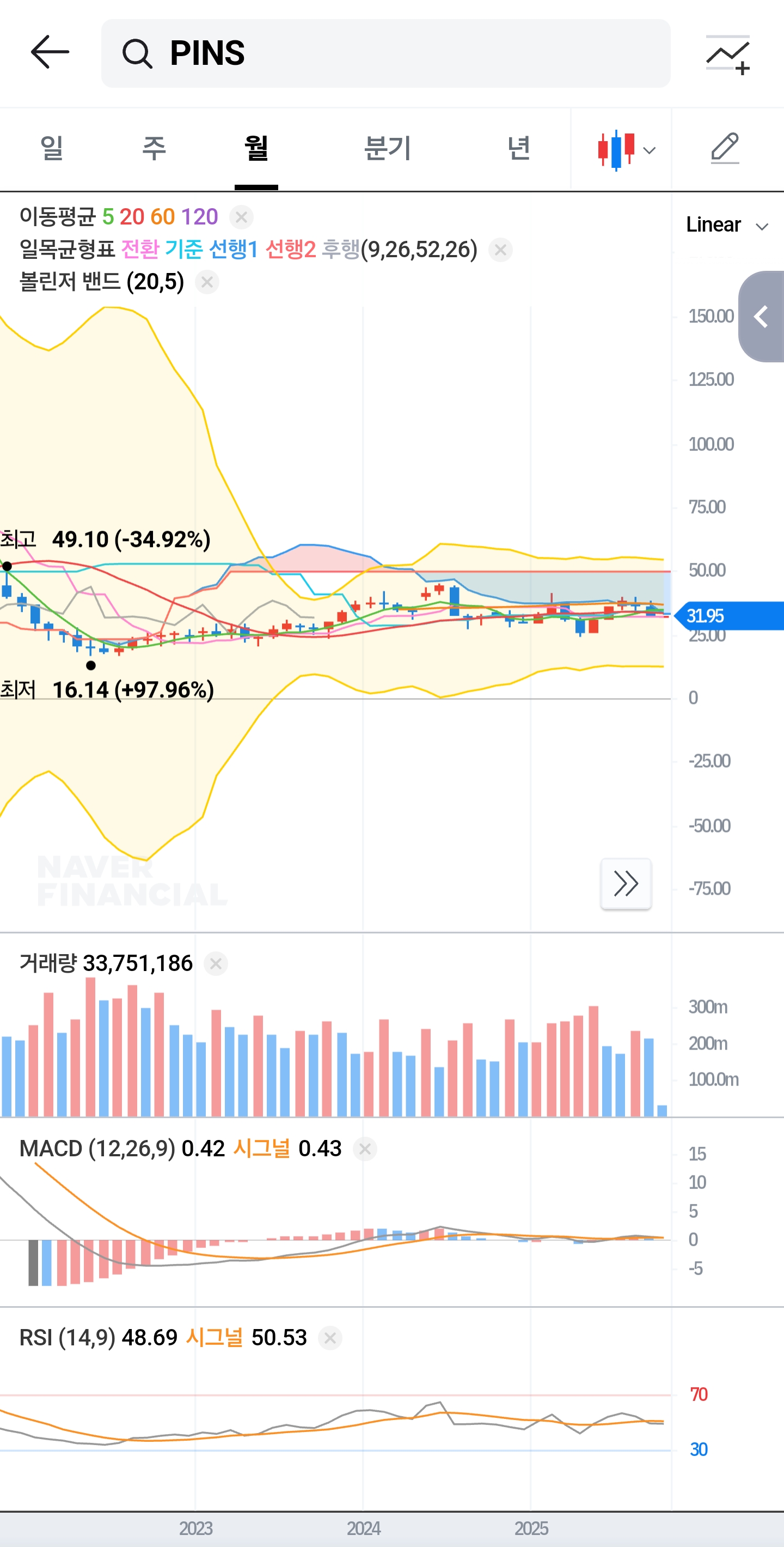 핀터레스트 주가 전망과 재무제표 분석: 2024 흑자 전환, 차트 흐름(일봉·주봉·월봉) 투자 전략 정리